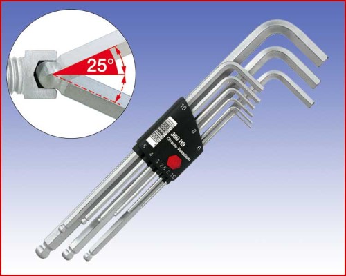 Dodatkowo: Popularne rozmiary kluczy w uchwycie. Prosta i szybka obsługa dzięki stałemu punktowi oporu kluczy. Końcówka kulista pozwala na pracę pod kątem do 25°.