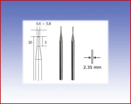 Do wiercenia, frezowania i cięcia włókna szkla-nego i płytek obwodów drukowanych oraz do wiercenia w perłach i podobnych materiałach. Średnica chwytu 2.35mm.