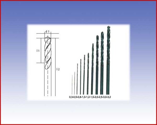 Zestaw wierteł HSS z DIN 338 Po 1szt. o średnicy 0.3; 0.5; 0.8; 1.0; 1.2; 1.5; 2.0; 2.5; 3.0 i 3.2mm.