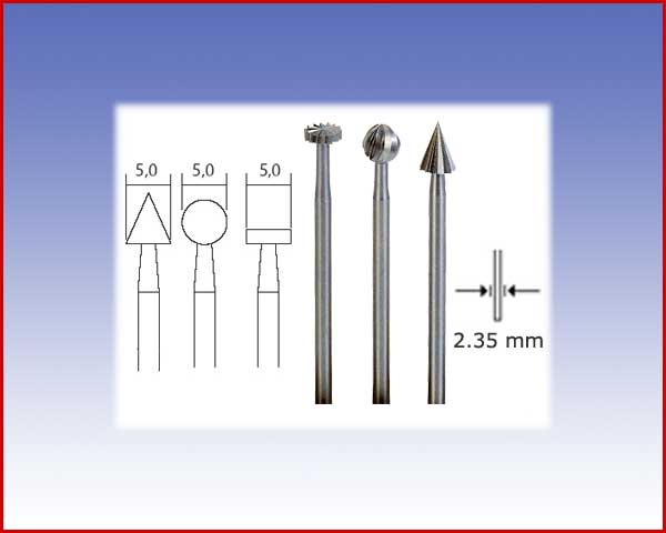 Frezy ze stali wolframowo-wanadowej. Wyborowa stal wolframowo-wanadowa. Stabilna konstrukcja, wysoka koncentryczność, frez wykonany z odkuwki. Precyzyjne żłobkowania, trwałość. Średnica chwytu 2.35mm poprzecznego i pionowego oraz profilowania.