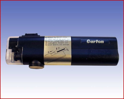 Mikroskop kieszonkowy o powiększeniu 50x z oświetleniem i skalą.