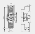 Gniazdo wtykowe, do przekaźnika R2M, szerokość 20 mm. Obciążalność toru: 7 A / 250 V AC. Montaż na szynie 35 mm lub na płycie montażowej dwoma wkrętami M4.