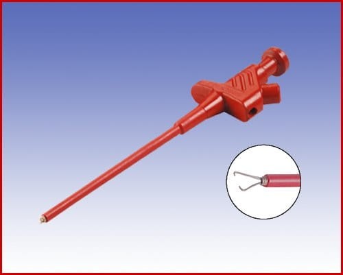 Chwytak pazurkowy z gniazdem Ø4mm, idealny do prac mierniczych w trudno dostępnych miejscach. Olbrzymim plusem jest jego łatwość stosowania, wystarczy umieścić niezaizolowany przewód, styk lub końcówkę bananka w pazurkowym chwytaku, poziom rozwarcia pozwala na dokonywanie pomiarów w nietypowych miejscach tym samym zapewniając prawidłowy odczyt. Dzięki swojemu elastycznemu wykonaniu jest zarazem niezwykle przydatny jak i bezpieczny.