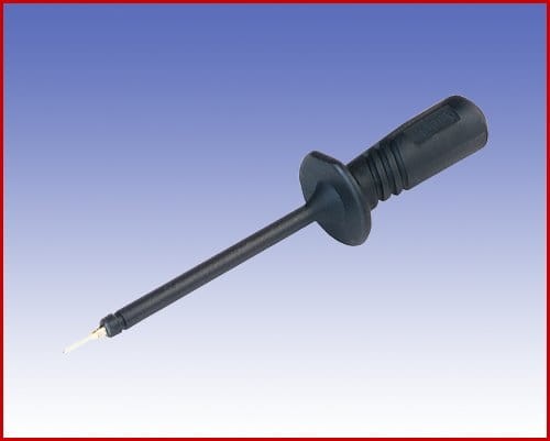 Izolowana sonda z cienką sprężynującą igłą wyposażona w popularne gniazdo Ø4mm, idealna do SMD. Ruchoma końcówka gwarantuje pewny kontakt z badanym punktem pomiarowym. Materiał kontaktowy stal szlachetna + pokryta rodem.