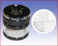 Lupa stojąca o powiększeniu x10 z 3 soczewkami dwuelementowymi oraz skalą o średnicy 33 mm z płynna regulacją ostrości. Produkcji japońskiej firmy optycznej.