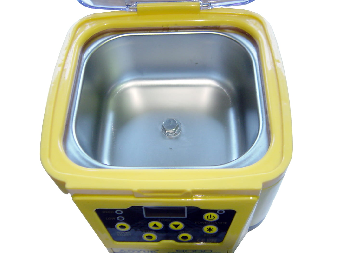 Myjka ultradźwiękowa 148 x 64 x 134mm przeznaczona do płukania płytek, elementów zegarków, telefonów, preciozjów jubilerskich, sprzętu precyzyjnego np. po zalaniu, zabrudzeniu, korozji, itp. Urządzenie automatycznie wyłącza się po procesie czyszczenia. Idealnie nadaje się do narzędzi serwisowych oraz układów BGA mytych w izopropanolu (IPA).