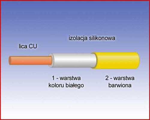 Przewód pomiarowy 1,0mm 2 w podwójnej izolacji silikonowej o wyjątkowej odporności na zmiany temperatury i agresywne środowisko a przy tym o bardzo dużej elastyczności.