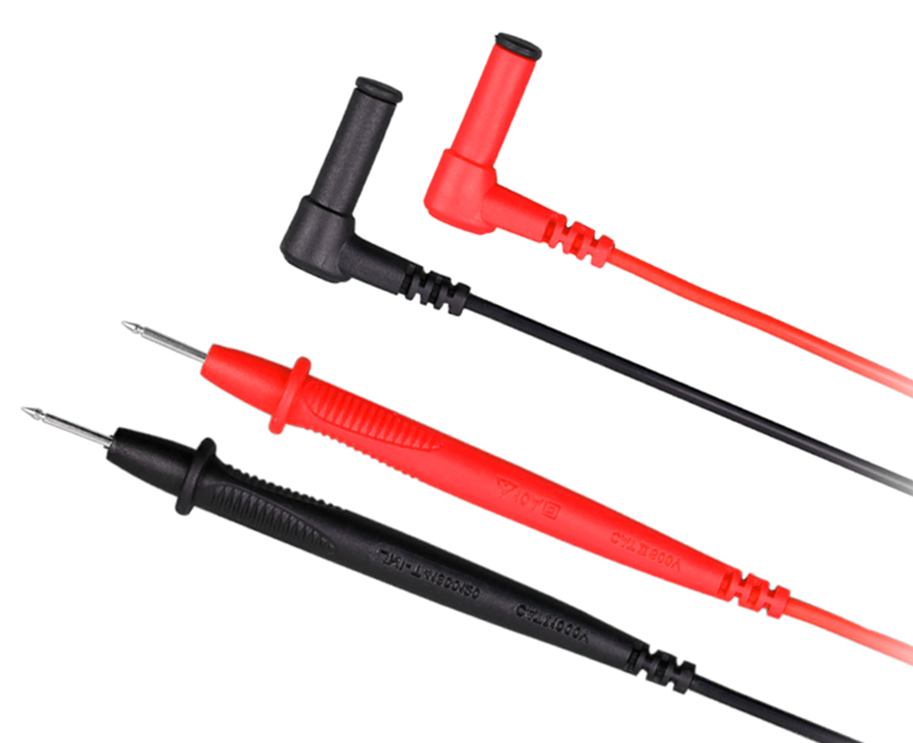 Dobrej jakości przewody pomiarowe 10A, posiadają ostrzowe końcówki pomiarowe Ø2mm, w pełni izolowane kątowe wtyki Ø4mm zapewniają pewne oraz bezpieczne podłączenie do miernika.