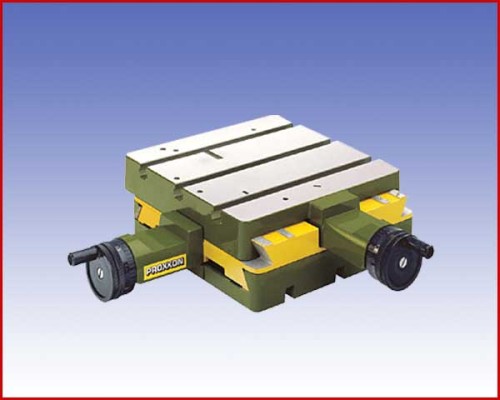 Do toczenia, frezowania i żłobienia stali, metali nieżelaznych, tworzyw sztucznych i drewna. Każda prowadnica ze śrubami mocującymi. Mocowanie typu jaskółczy ogon eliminuje drgania podczas obróbki. Posuw ustawiany przy pomocy 2 ręcznych pokręteł ze skalą (1obr=2mm, 1 działka=0.05mm). Powierzchnia robocza z trzema teowymi rowkami do mocowania imadeł maszynowych i zestawów mocujących. Ogranicznik z możliwością ustawienia pod kątem, także 45°, śruby mocujące i zacisk w zestawie. Wymiary blatu roboczego 200x200mm. Skok maks. 150x150mm. Wysokość ok. 75mm. Waga 4.9kg.