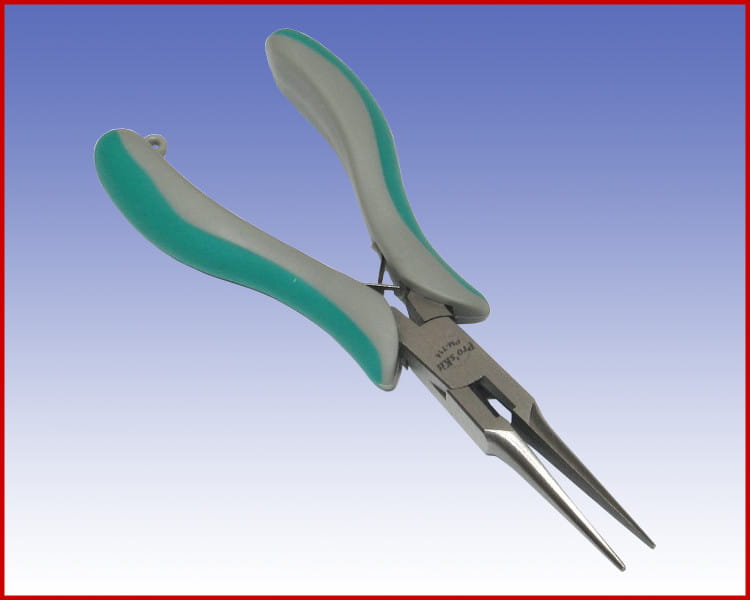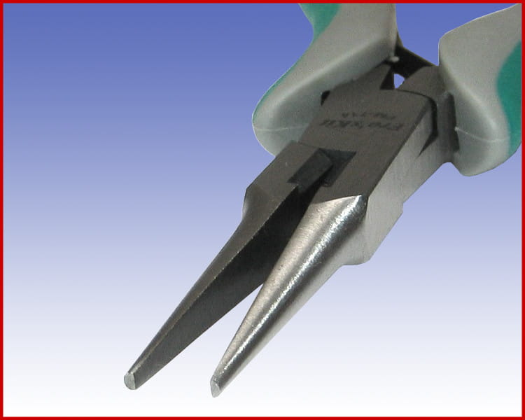 Dobrej jakości szczypce półokrągłe proste przeznaczone do precyzyjnego chwytania elementów elektronicznych, a także cięcia drutów miedzianych o średnicy do 2 mm, oraz drutów stalowych o średnicy do 0.8 mm.