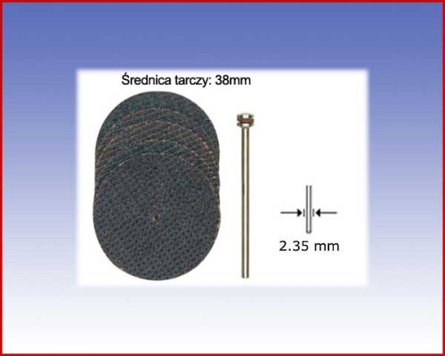 Dostępne średnice 38x1,0. Niemal niezniszczalne odpowiednie więc do szlifowania zgrubnego. Do stopów, stali i stali nierdzewnej, metali nieżelaznych a także drewna i tworzyw sztucznych. Średnica trzpienia 2.35mm.